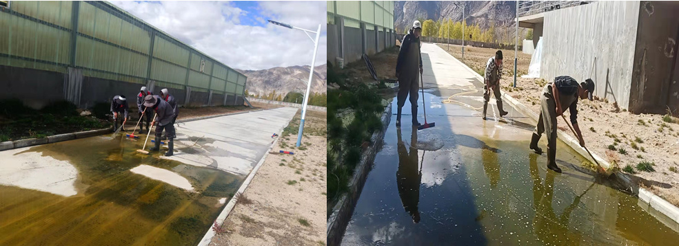11月1日至3日期間,南木林污水處理廠組織廠區(qū)工作人員清掃廠區(qū)道路上的灰沙和青苔及清理堵塞中轉(zhuǎn)泵和打撈中轉(zhuǎn)泵池內(nèi)的大型垃圾及懸浮物,目的是保障管道的疏通和進(jìn)出水在線監(jiān)測情況,使污水處理系統(tǒng)能夠正常運轉(zhuǎn)作業(yè)和落實“加強污水治理,推進(jìn)治污減排”工作。